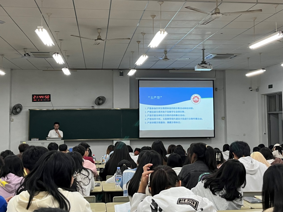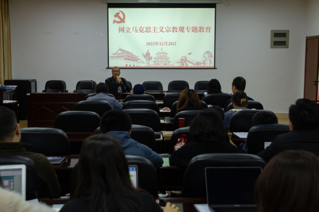 2月28日下午,学院在五楼会议室召开教职工大会,专题学习马克思主义宗教观。会议由院党委书记郑文灿主持。会上,郑文灿带领全体教职工,学习习近平总书记关于宗教工作的重要论述。会议强调,马克思主义宗教观是我们正确认识宗教的“总钥匙”。宗教信仰自由不等于传教自由,校园内禁止开展与宗教相关的一切活动。全体教职工应当树立马克思主义宗教观,牢记为党育人、为国育才的初心,做坚定理想信念的新时代优秀教师。日前,各年级辅导员已面向各年级学生开展马克思主义宗教观专题教育。