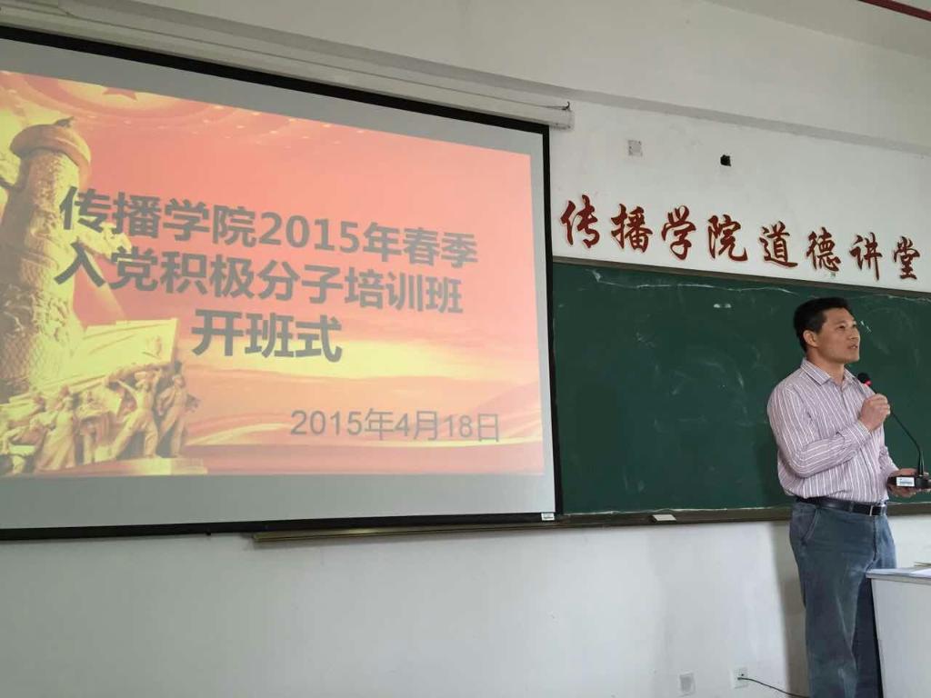 4月18日上午9时,福建师范大学传播学院分党校2014年春季入党积极分子培训班开学式在学院五楼会议室举行。党委副书记赖忠泉、党委办公室主任黄鲤忠、各年级辅导员和70名学员参加了开学式。