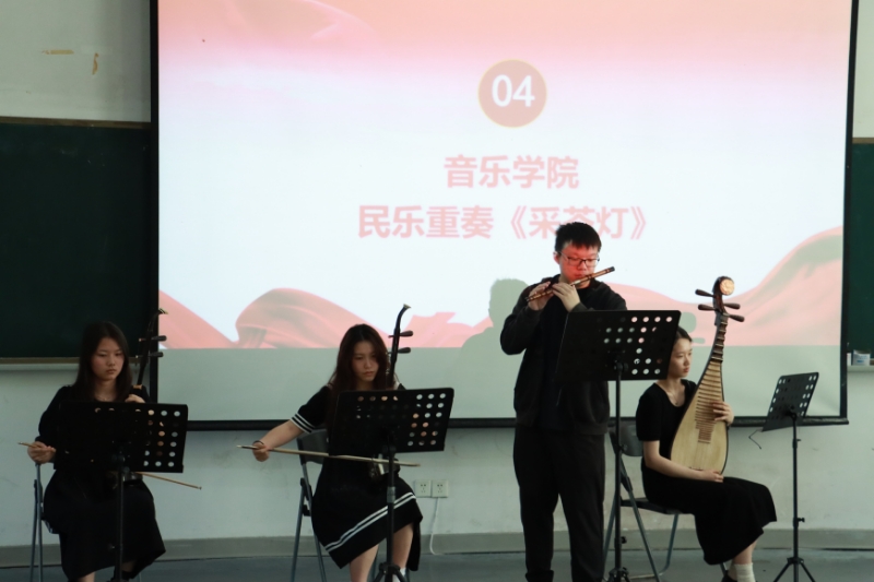 传播学院与音乐学院的学员们分别带来朗诵《信仰的权利》与民乐演奏《采茶灯》,深度融合艺术与党史学习教育,让学员们在艺术氛围中感悟党的初心使命,汲取奋进力量。