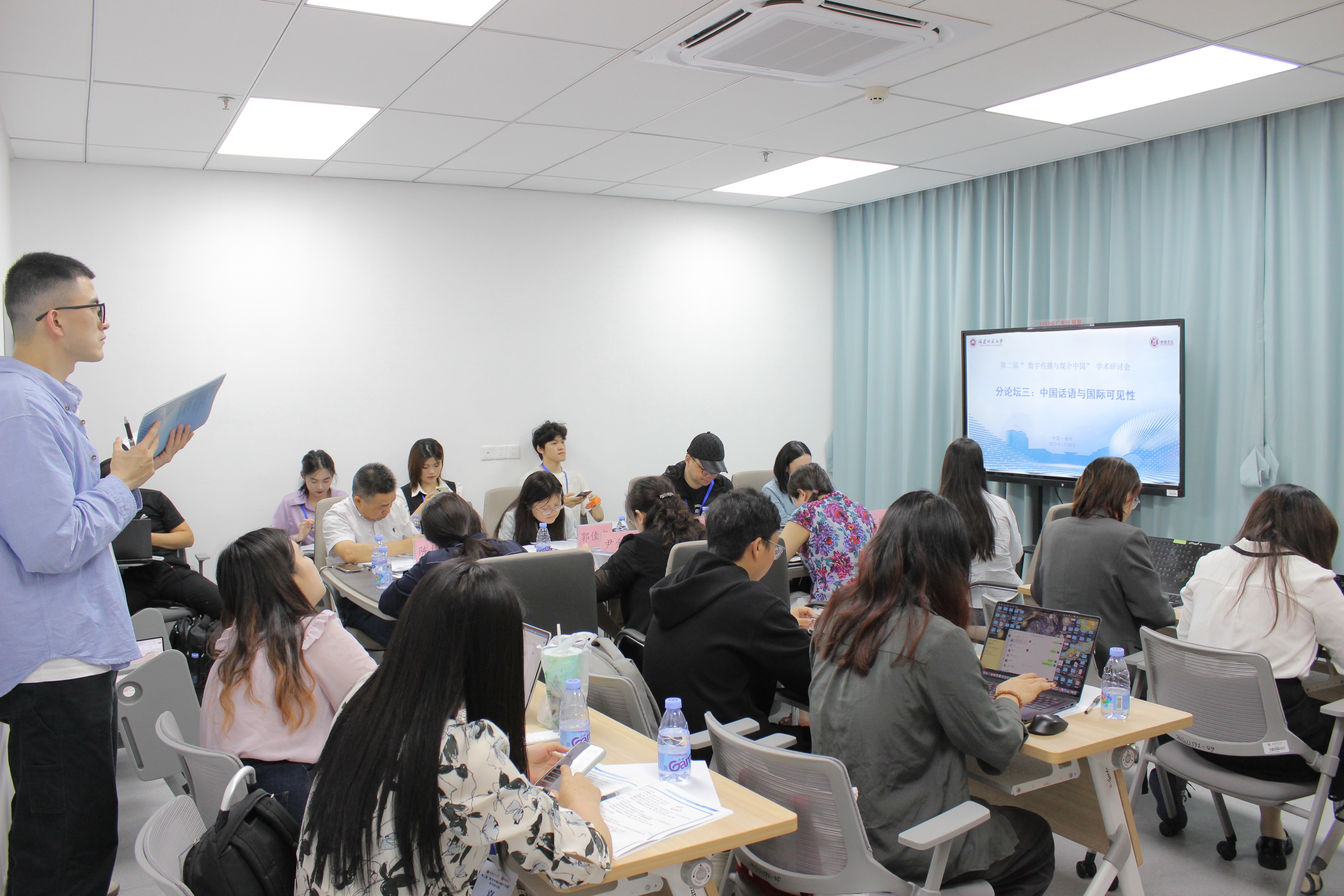 2025年5月10日,第二届“数字传播与媒介中国”学术研讨会在我校成功举办。本次会议由“数字传播与媒介中国”学术共同体主办,福建师范大学学报编辑部、福建师范大学传播学院共同承办。研讨会围绕“数智时代的传播新生态与当代中国”的主题,来自复旦大学、北京师范大学、中国传媒大学、上海交通大学等知名高校的新闻传播领域专家学者、“数字传播与媒介中国”学术共同体代表、友刊嘉宾、获奖学者及各校师生120余人参加会议。本次会议分开幕式、专家主题报告、主题分论坛三部分。福建师范大学副校长欧阳松应出席会议,会议开幕式由福建师范大学传播学院党委书记郑文灿主持。