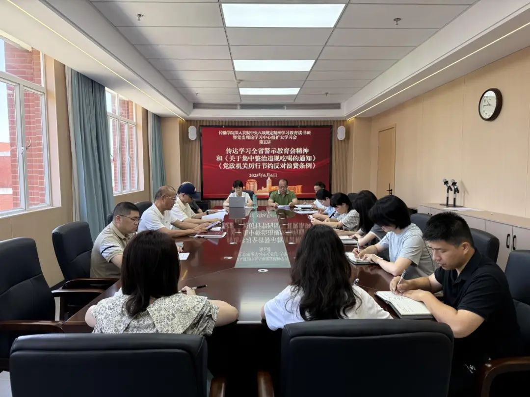 6月6日上午,传播学院深入贯彻中央八项规定精神学习教育读书班第五讲暨党委理论学习中心组(扩大)学习会在401会议室举行,传达学习全省警示教育会会议精神和《关于集中整治违规吃喝的通知》《党政机关厉行节约反对浪费条例》,并围绕典型案例开展警示教育。读书班全体成员出席会议,院党委书记郑文灿、院长谢宗贵、院党委副书记林子鸿作重点发言,中心组其他成员作交流发言。会议由郑文灿主持。