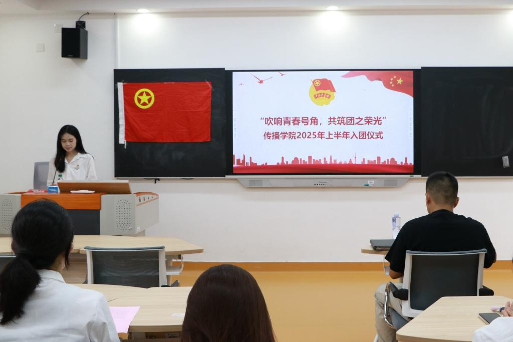 6月11日下午,传播学院2025年“吹响青春号角,共筑团之荣光”新发展团员入团仪式于学院508教室召开。院团委书记李恺娴,辅导员吴亮亮、冯珍珍,院团委、学生会主要学生干部以及全体新发展团员参加。