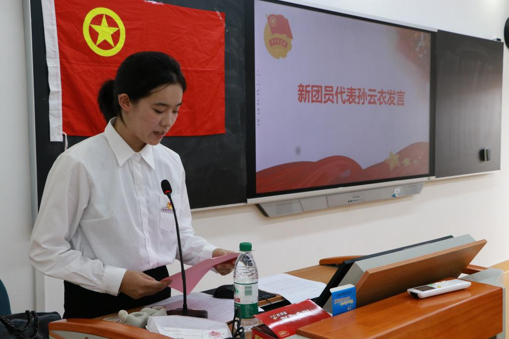 仪式上,新团员代表、2024级播音与主持艺术专业的孙云衣发言,她表示,加入中国共青团让她感到无比光荣和激动。她用责任、向往和奋进三个关键词概括了入团的心情和未来的决心。她表示新团员们将不负期望,牢记入团誓言,践行共青团员的使命,为实现中华民族伟大复兴的中国梦贡献青春力量。