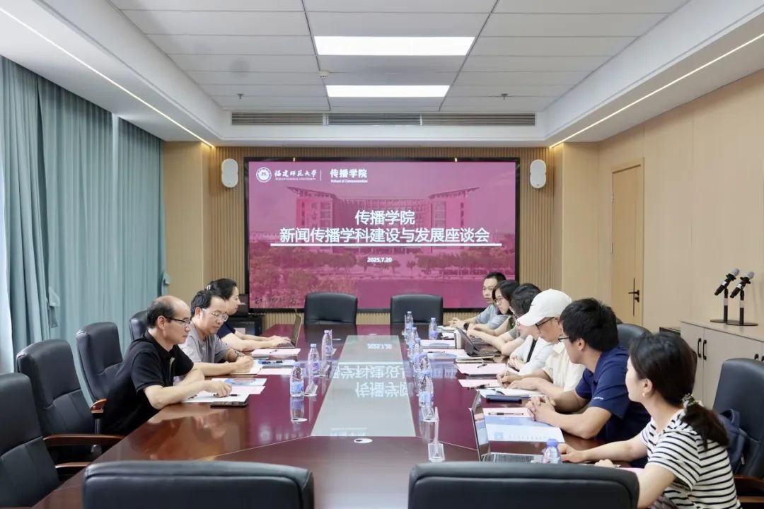 新闻传播学科建设与发展座谈会在学院四楼会议室召开,中国传媒大学科研处处长周建新、图书馆馆长龙小农、区域国别传播研究院执行院长周亭参加。会议由我院院长谢宗贵教授主持。张梅向来访嘉宾致辞欢迎,周建新介绍中国传媒大学科研发展相关情况,分享学科建设经验。谢宗贵围绕我院师资队伍、平台建设、人才培养等方面,介绍我院戏剧与影视学科和新闻传播学科的发展历程与建设成效,与会人员围绕我院新闻传播学科建设展开热烈交流探讨。