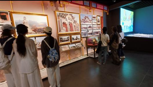 随后,团队一行前往妈祖源流博物馆。馆内陈列着众多与妈祖文化相关的珍贵资料和文物,队员们结合出发前搜集到的信息,仔细探寻妈祖文化的起源与发展脉络。大家不时在展柜前停下脚步,相互交流着各自收集到的妈祖故事,在思想的碰撞与分享中,对妈祖文化的内涵有了更为深刻的理解。实践过程中,队员们围绕 “救海难”“济万民”等传说展开讨论,逐步厘清信仰背后“海洋保护”“邻里互助”的文化内核,品味“平安”二字所蕴含的深刻寓意,以及它在当地长久以来的传承,进一步丰富了对湄洲岛文化地标与精神符号的认知。