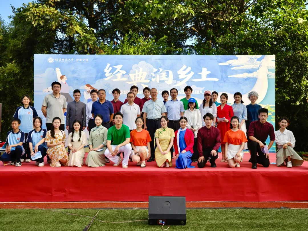 一直以来,我院通过“一条主线,两大社团,三阶实践”的方式,开设数场朗诵专题讲座,提升教师审美素养,全方位助力厦门六中学生思政宣讲团、福州小茉莉朗诵艺术团,在厦门、福州两地起引领作用。并以“高雅艺术进校园”“美育浸润行动”“经典润乡土”三大活动为龙头,组织近20场朗诵艺术进校园演出活动,影响广泛。今年6月,福州市教育局福州小茉莉朗诵艺术团主办,我院联合多方协力举办了“声传华夏魂,诵启少年志”的主题朗诵节目汇报演出,实现了思政教育与诵读艺术的深度融合。8月底,我院组织福州市中小学朗诵师资专项培训,为构建地方美育教育人才体系提供关键支持。