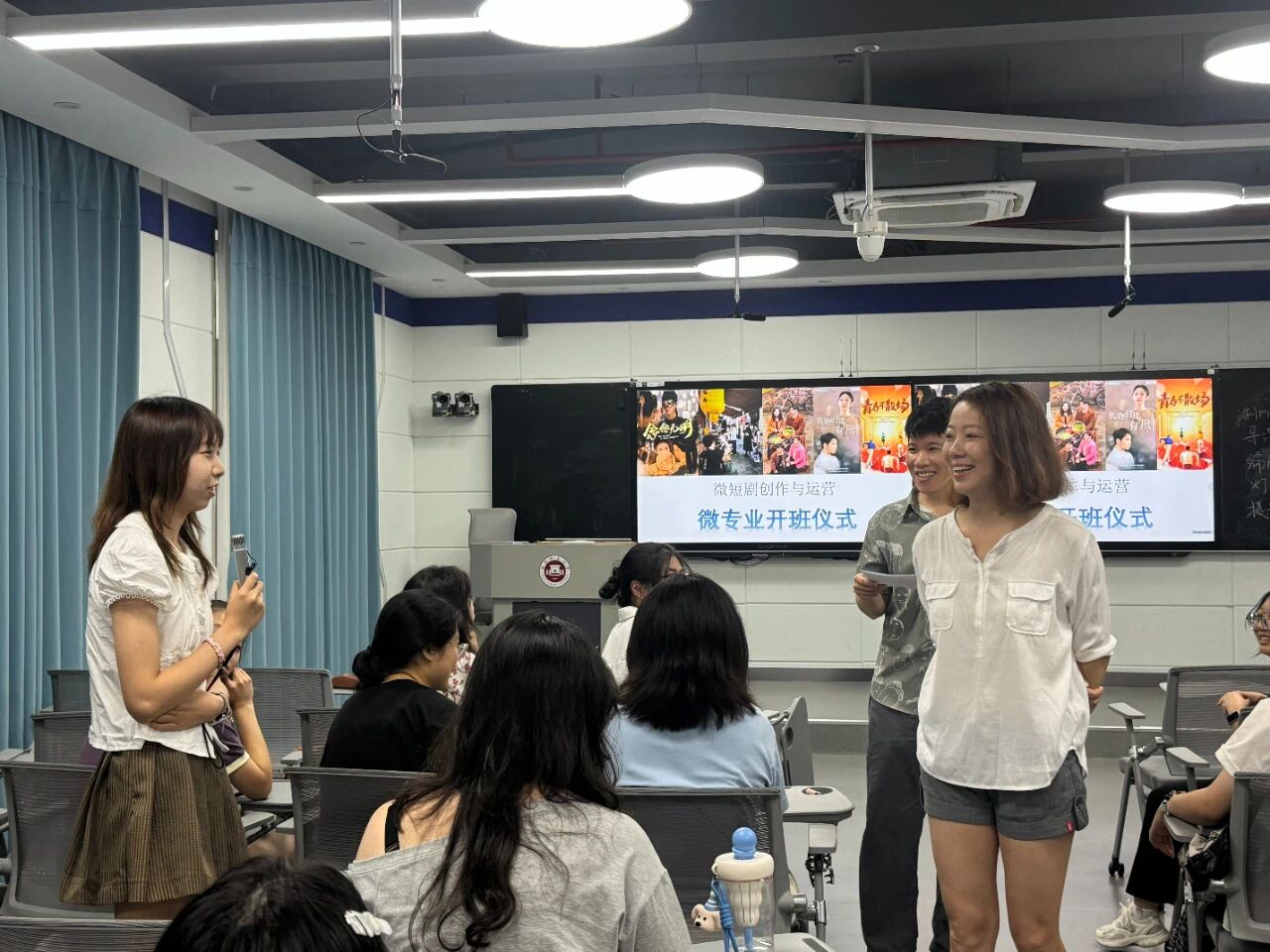 《微短剧创作与运营》微专业的成功开班,是我院主动适应文化产业发展新趋势、推动学科交叉创新的重要举措,是学校在培养契合社会需求的复合型、应用型人才方面迈出的坚实一步,为学生拥抱新媒体时代提供了高价值的成长平台。