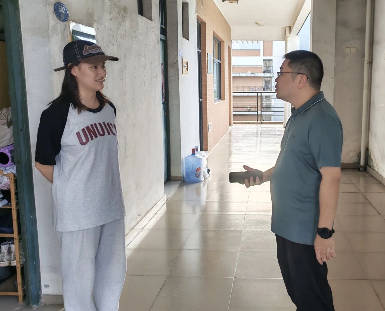会后,学院领导带队开展假期前学生宿舍和教学场所安全隐患的排查走访工作,并在走访过程中与学生亲切交流,关心学生假期安排、留校情况与毕业生就业备考情况。