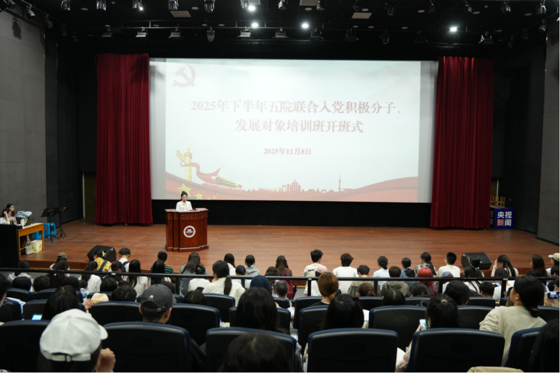 11月8日上午,心理学院、传播学院、音乐学院、美术学院、化学与材料学院联合分党校2025年下半年入党积极分子、发展对象培训班开班式在传播学院星雨剧场举行。美术学院党委书记张栋、传播学院党委副书记林子鸿、音乐学院党委副书记杜成煜,五院党委组织员、团委书记、辅导员以及全体学员400余人参加了开班式。开班式由传播学院2023级播音与主持专业王涵同学主持。