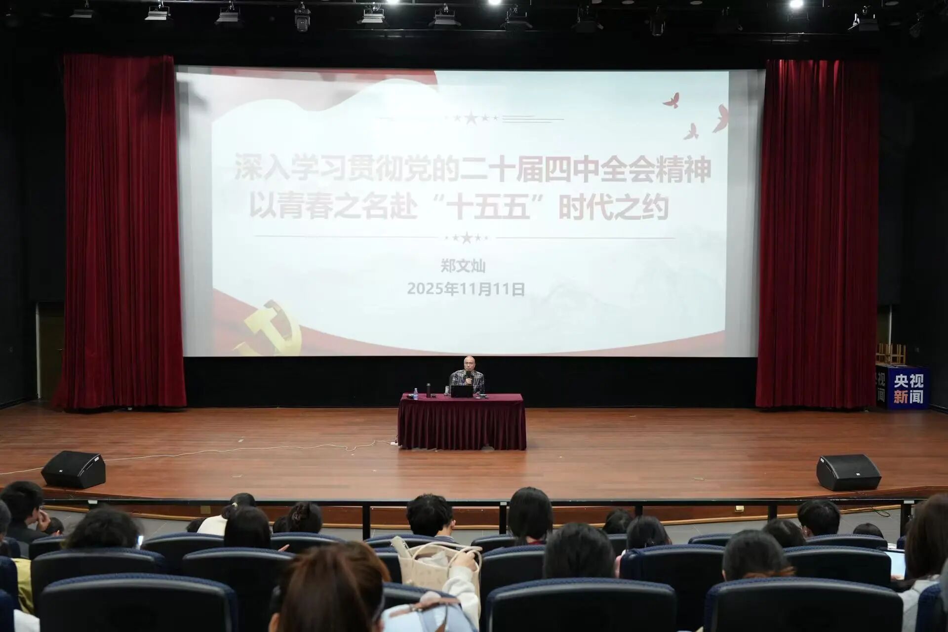 11月11日晚上,我院党委书记郑文灿在星雨剧场讲授题为《深入学习贯彻党的二十届四中全会精神 以青春之名赴“十五五”时代之约》的党课,学院全体党员、2025年下半年入党积极分子培训班全体学员到场学习。