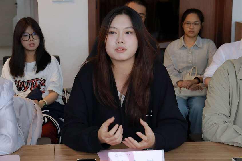 获奖学生代表们结合自身经历分享成长收获。项目负责人葛江美玥同学分享了团队一路走来的经历,对学院的支持帮助、老师的倾情指导表示衷心的感谢。项目成员蔡宇馨、夏兴悦、薛之睿、王添释分别分享了自己的所思所感,大家表示本次项目不仅锤炼了自身专业能力,更收获了个人成长。