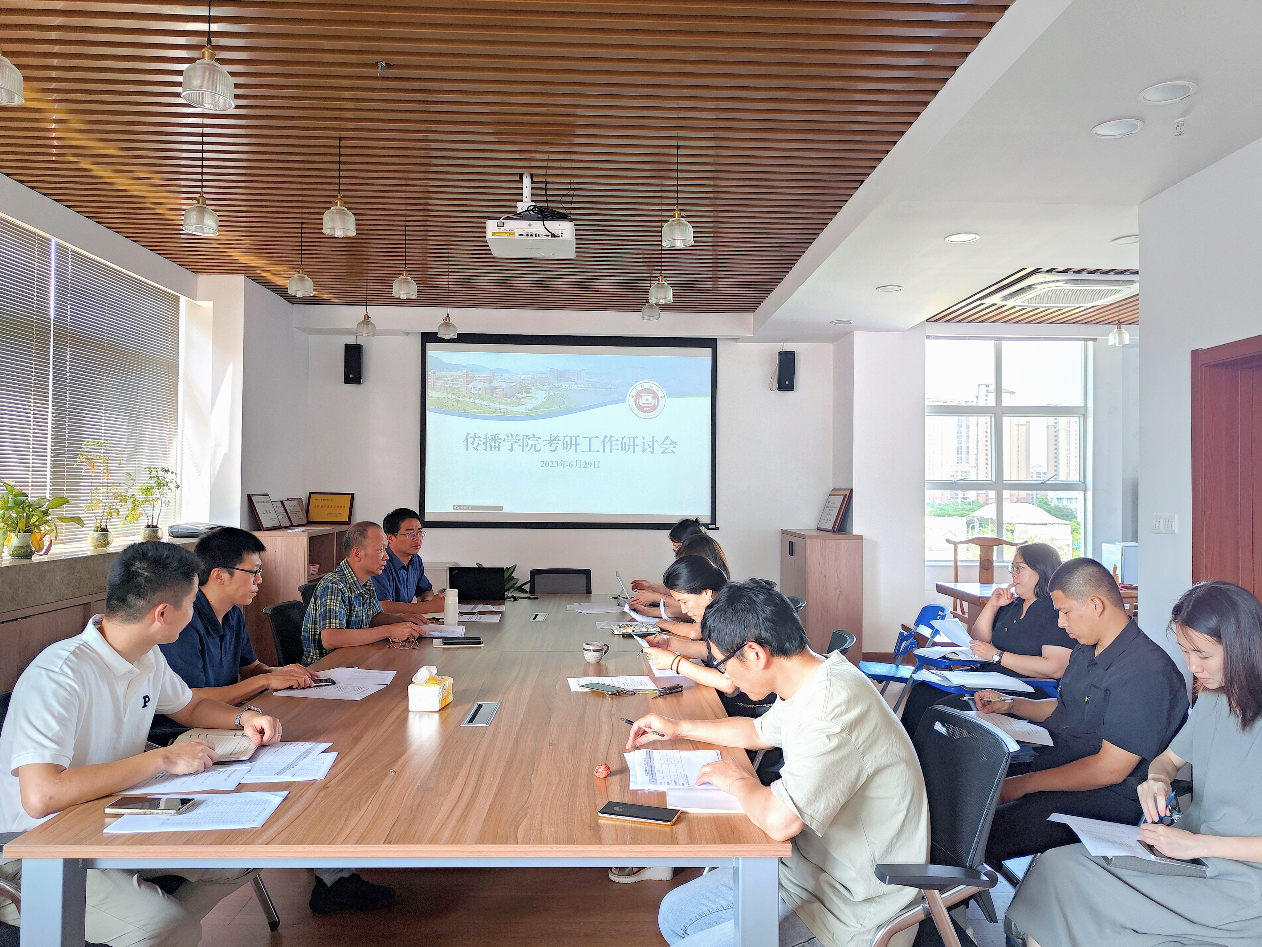 6月29日,我院在传播学院五楼会议室展开考研工作研讨会。院长谢宗贵,党委副书记谢秀俤,副院长吴青青,新闻传播学位点负责人,部分专业教师,各年级辅导员参加会议。