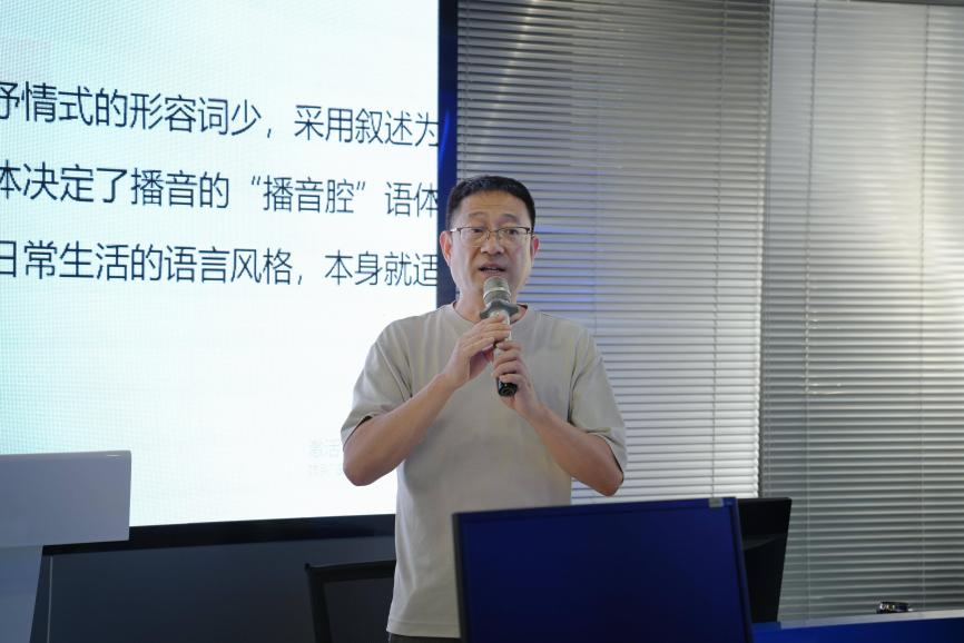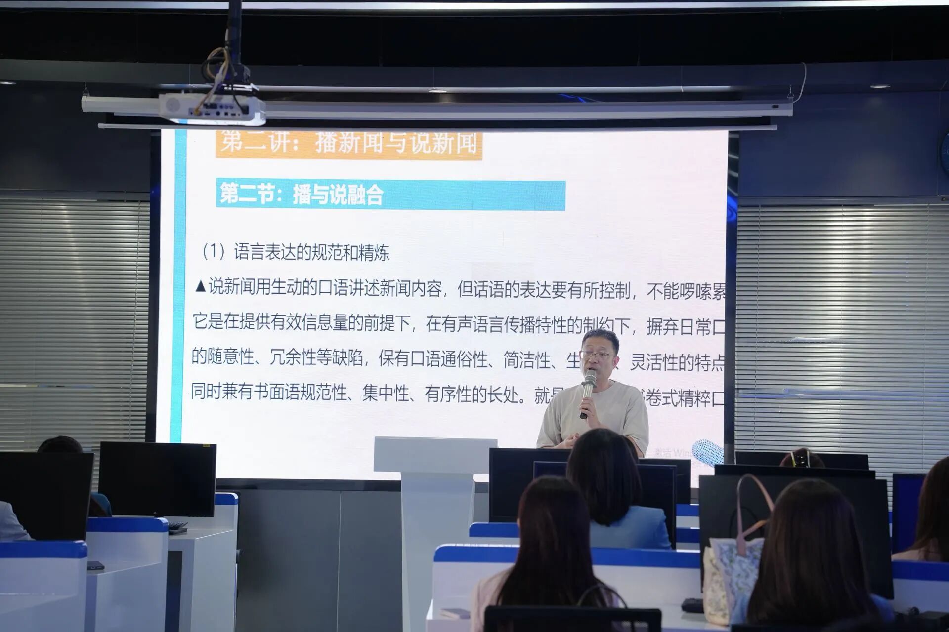 近日,播音系的老师们观摩了系主任彭飙老师的“新闻节目播音与主持”示范课程。彭飙老师围绕新闻节目主持人的“播”与“说”,从时代差异、主播定位、写作文体、传播语境等角度展开论述。强调AI主播虽然带来挑战,但在情感表达的细腻度、自然度和真实感上与人类主播有差距,难以对新闻内容产生真正的情感共鸣。新闻节目的播音要适应时代需要,理解、感受新闻内涵,播说结合,以“人格化”的演绎和表达赋予新闻播报可信度和交互感,彰显新闻公信力和权威性。