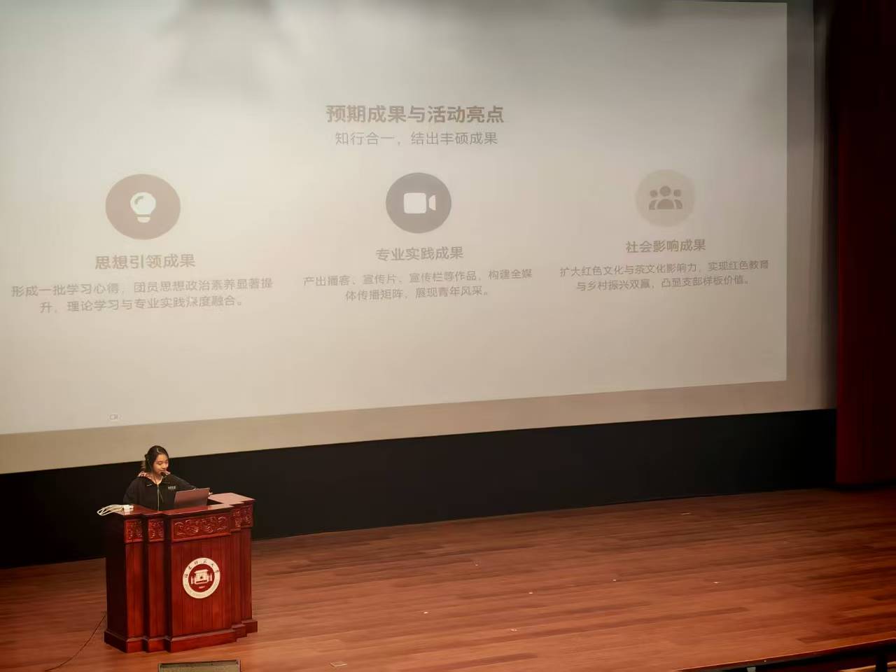 团总支发布本学年团立项“实践蓝图”,各支部结合专业特色明确具体任务:一是“走出去”开展记录学习,组织六个支部共同前往名人纪念馆,学习榜样精神,感受先辈力量;二是“用起来”推进跨专业联动,将新闻与传播学类、广播电视编导、广播电视学、播音与主持艺术专业相结合,将调研成果转化为传播内容,制作专题视频与图文报道;三是“传下去”开展志愿宣讲:积极组织团员志愿者,前往社区开展有关全会精神宣传与相关知识讲解,将理论结合在实践中。各支部代表依次上台,针对各支部优势亮点,阐述立项推进计划,让全会精神在具体行动中落实。