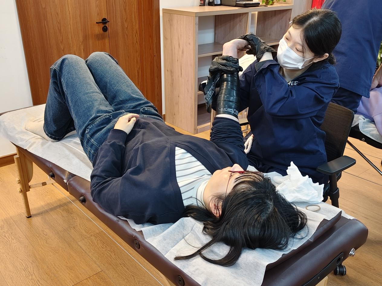 针对高校教师长期伏案、面对屏幕工作的职业特点,本次活动特别邀请了“骨邻康复”专业团队提供针对性服务。现场设置了康复理疗、评估与咨询专区,康复师运用专业理疗手法帮助老师们放松肌肉、缓解疲劳,并现场示范了适用于办公间隙的拉伸动作及日常康复技巧,耐心解答了各类健康疑问。