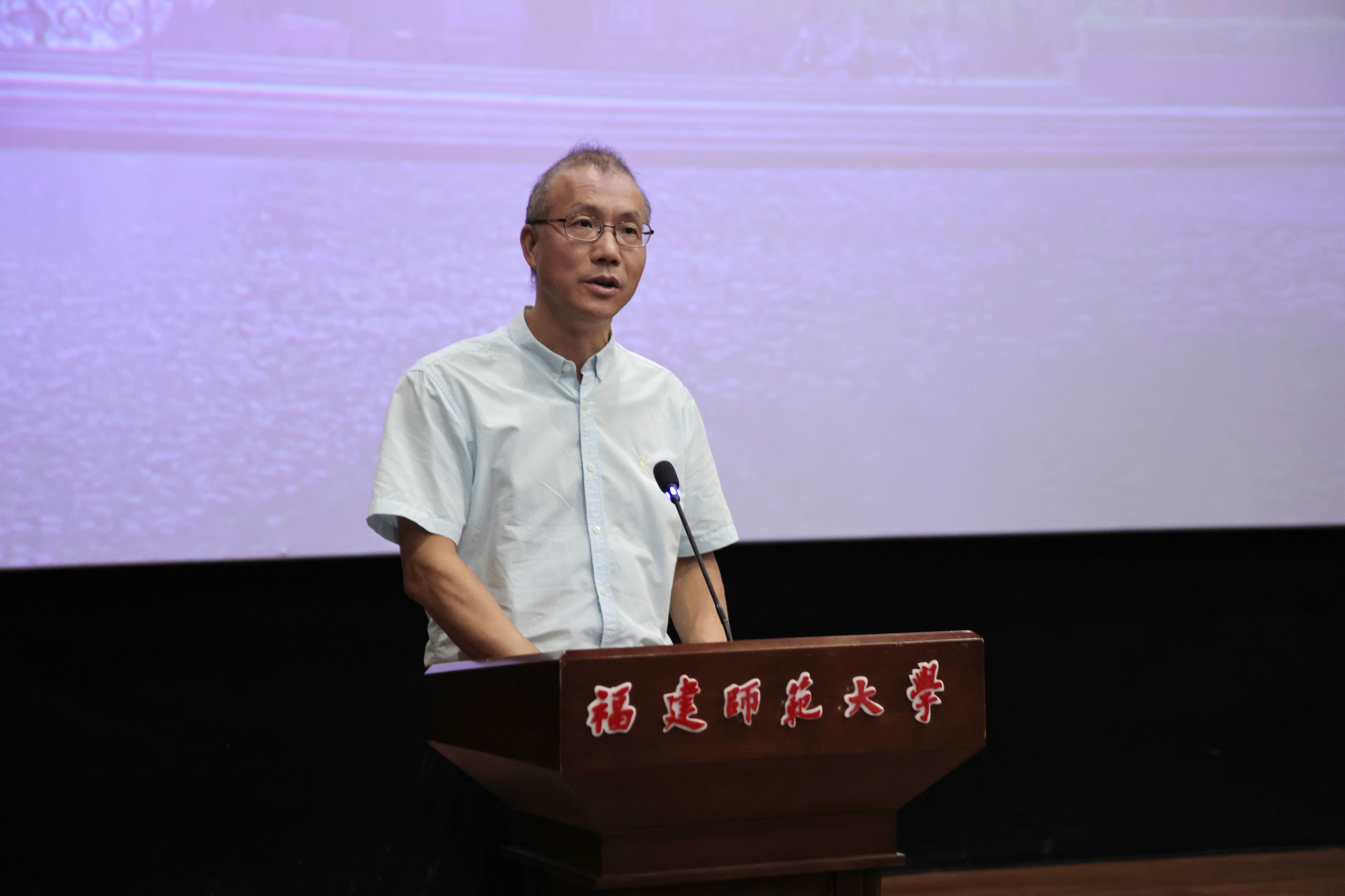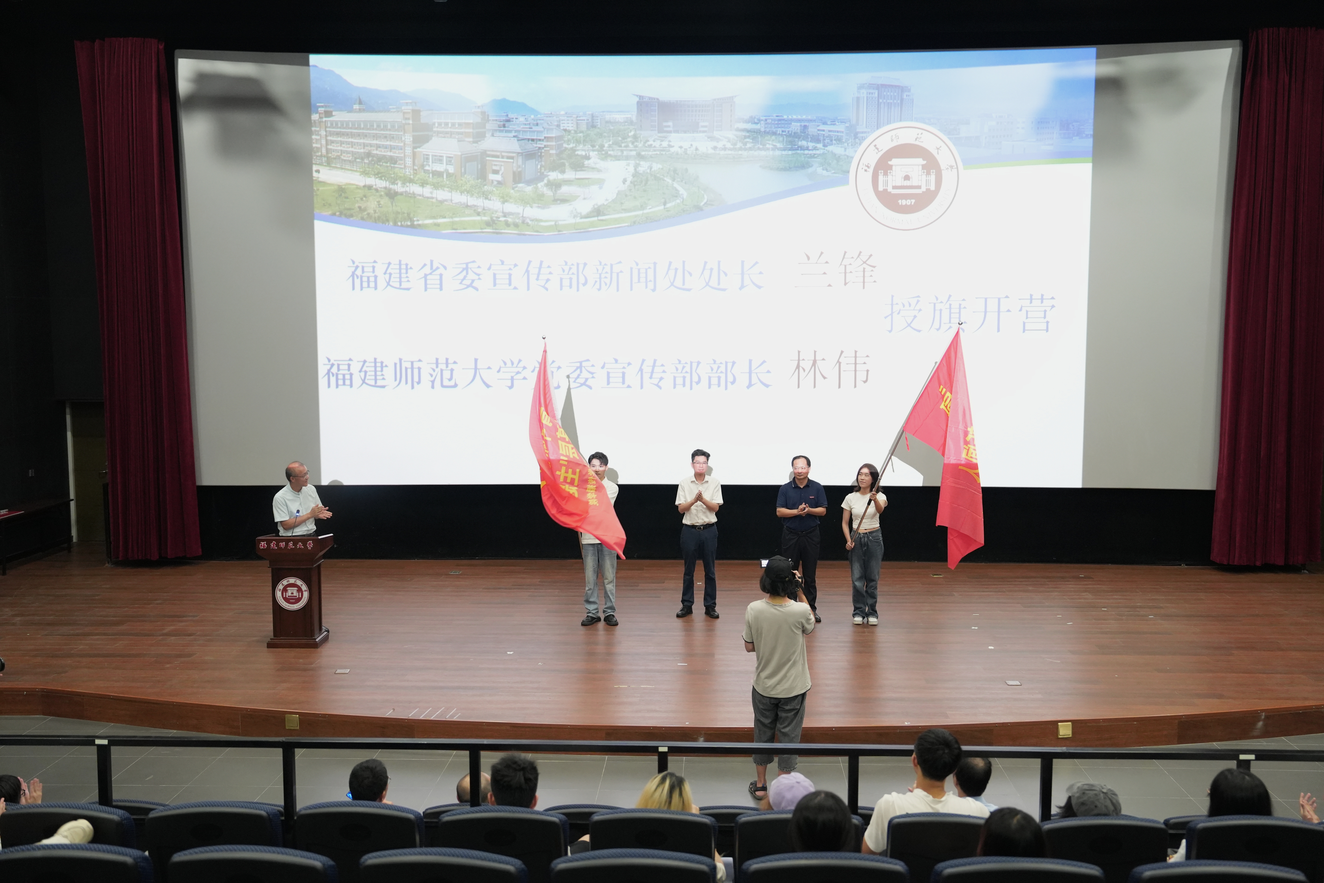 仪式上,福建省委宣传部新闻处处长兰锋、福建师范大学党委宣传部部长林伟上台为社会实践团队代表授旗开营。
