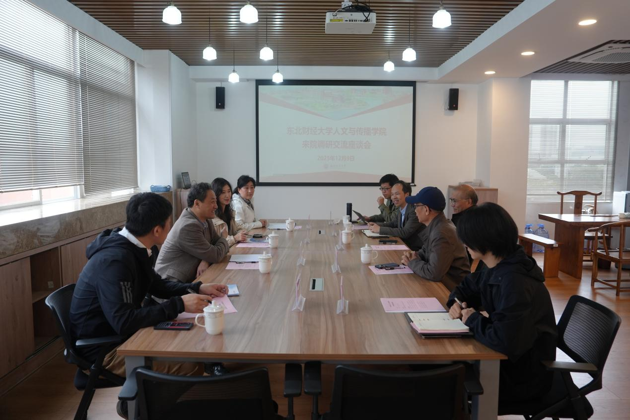谢宗贵院长介绍了传播学院在师资队伍、学科建设等方面的基本情况。韩传喜围绕交叉学科建设布局、创新型人才培养模式等内容,介绍了东北财经大学人文与传播学院的教学科研与学生实践方面的做法。双方聚焦学生成长发展的实际需求,就专业设置、办学经验、人才培养、国家语言文字推广基地建设等方面展开深度交流。