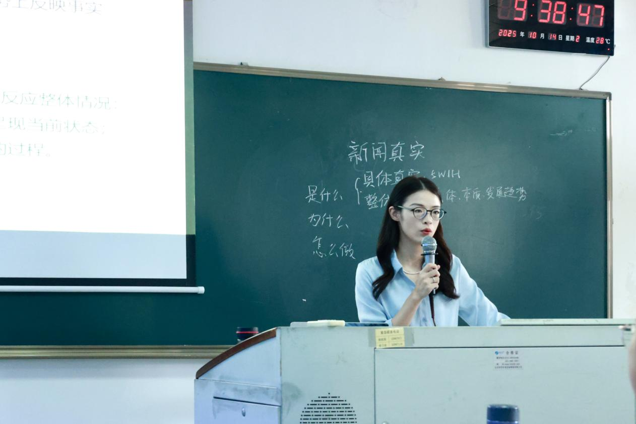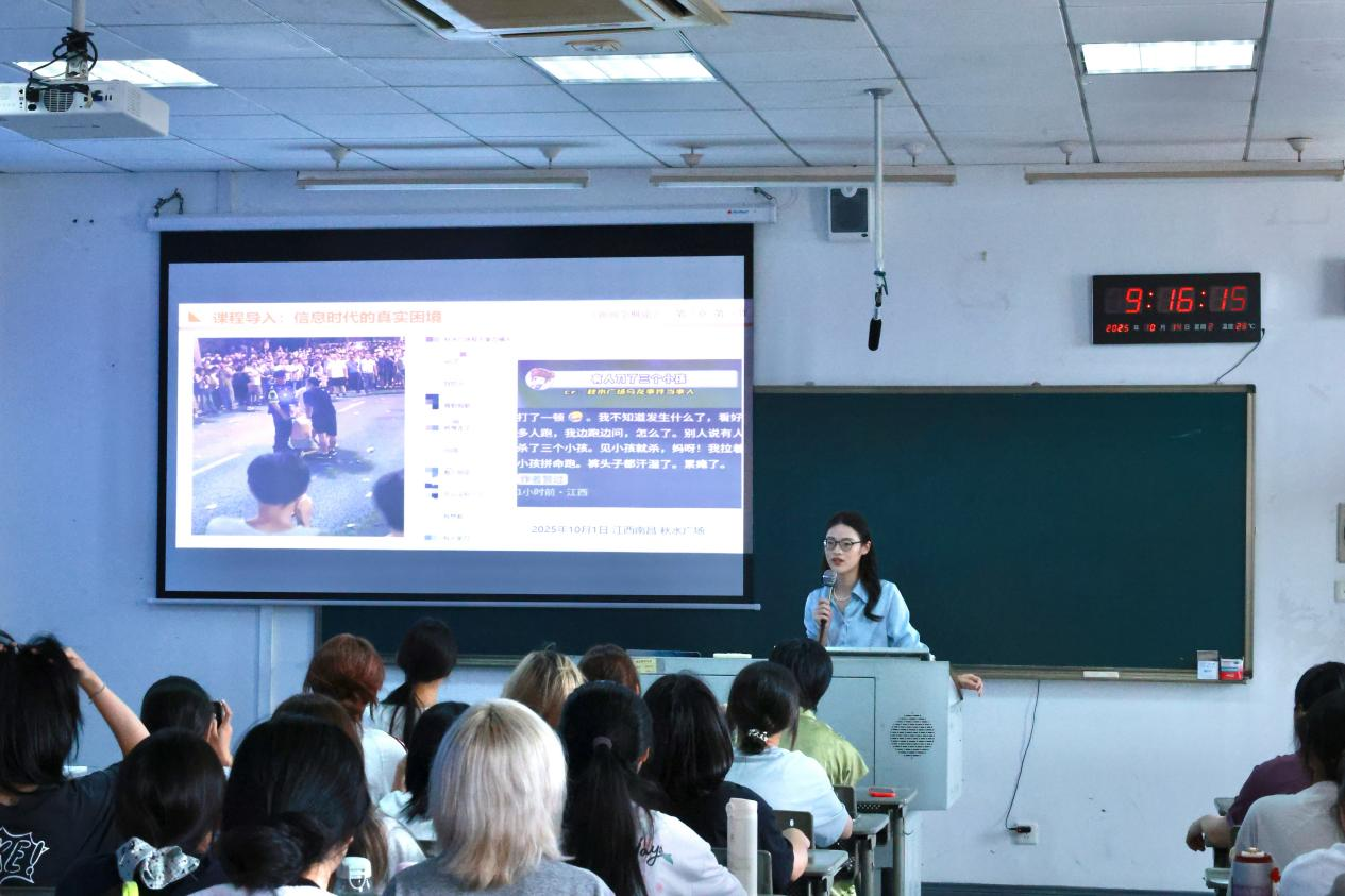 公开课以《新闻学概论》为依托,围绕“新闻真实”主题展开,以国庆南昌秋水广场谣言事件发酵与真相揭晓的全过程切入,直指“新闻真实”核心主题,引发学生深度思考。课程援引国内外多案例,抛出“何为真实”的思考命题,学生踊跃发声,各抒对真实的独特理解。课程以思维导图拆解知识,从“新闻真实是什么”“为什么重要”“怎么做”三维度,让内容清晰可感、通俗易懂,引发学生广泛思考。授课结束后,学院随即组织集体研讨,教师们围绕课堂设计、教学方法、案例运用等方面进行深入交流,既肯定了课程亮点,也提出了改进建议。