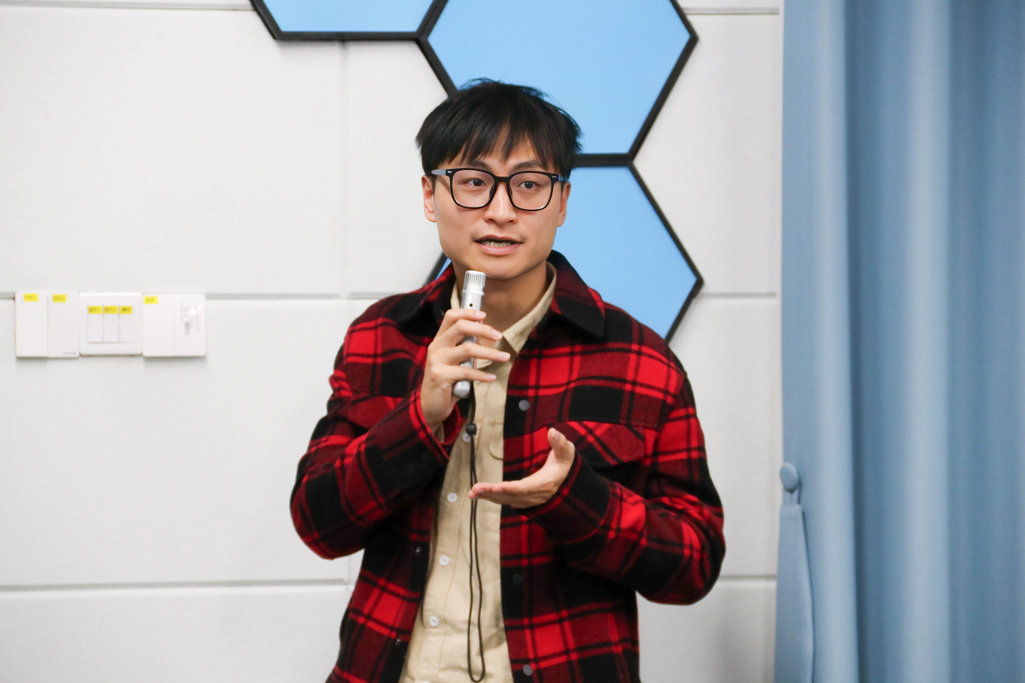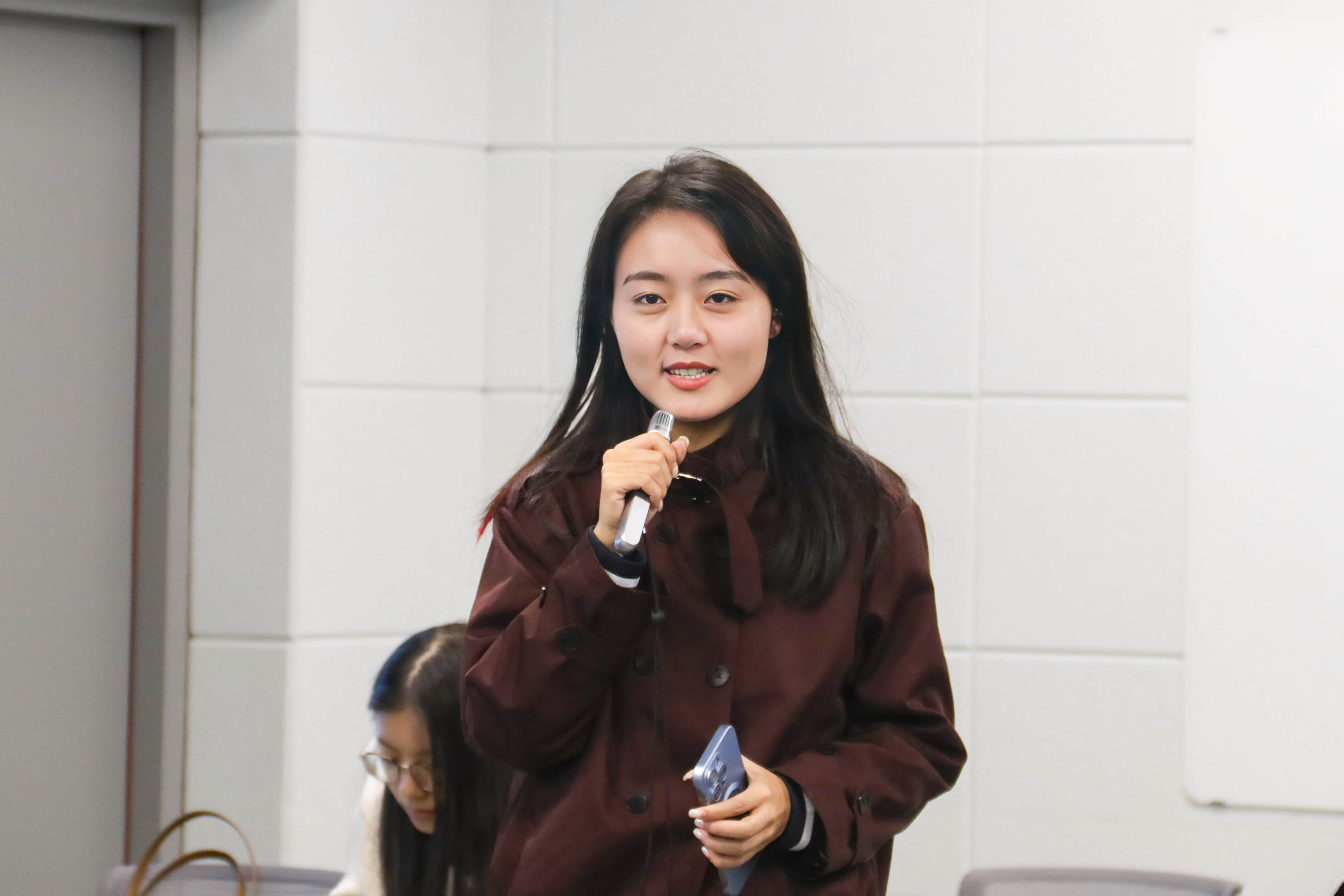 闽南语传播卓越拔尖人才实验班学员陈锦钰上台分享了借助该平台创作作品的实践经验,表示在作品创作过程中应注意地域不同带来的闽南语语音语调上的差异,并分享了让AI配音更加贴合地道闽南语表达的多种方式。