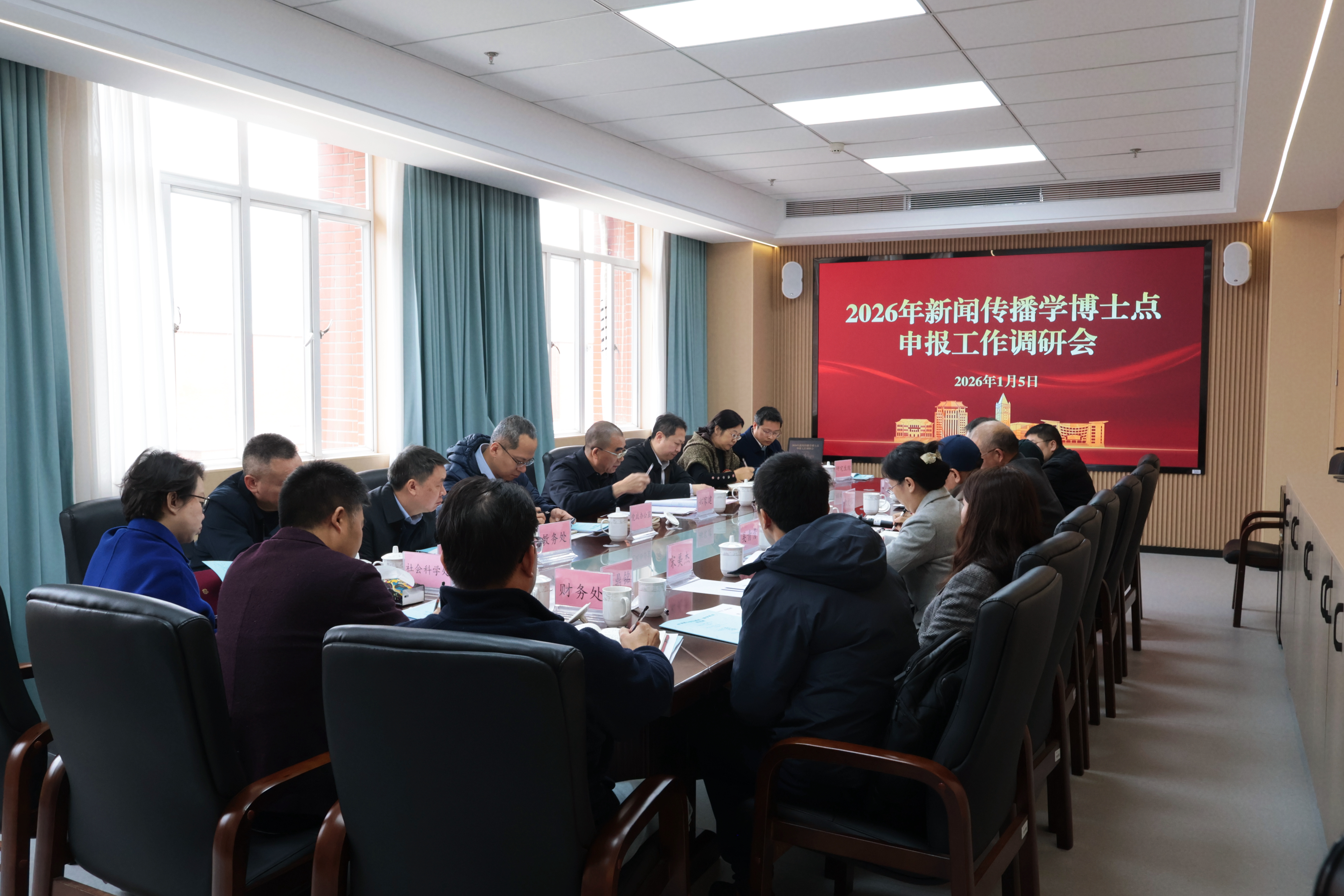 1月5日,校长郑家建、副校长方千华一行莅临我院开展2026年新闻传播学博士点申报工作调研。党政办公室、教师工作部、教务处、研究生院、发展规划处、人事处、社会科学处、财务处等职能部门负责人陪同调研。学院领导与教师代表参加会议。
