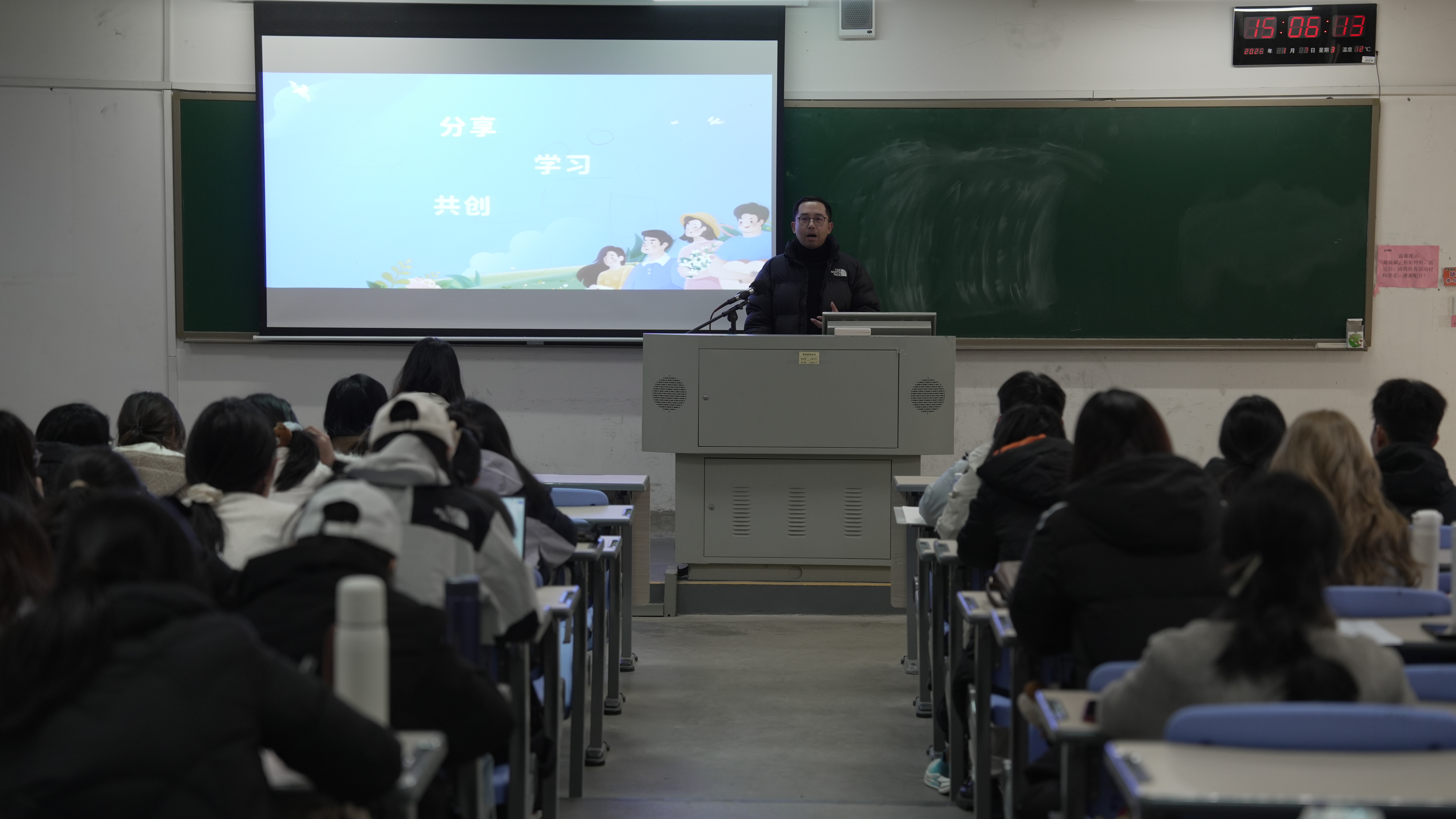 为全面提升学员素养,锻造一批信仰坚定、素质过硬的青年马克思主义骨干,1月7日下午,共青团福州市晋安区委书记、我院校外兼职辅导员朱杰忻老师在致广楼1-101教室,为传播学院、体育科学学院、社会历史学院“青马工程”培训班全体学员,讲授了题为《以青春之我,筑自信之路——青春与“四个自信”同行》的课程。课程由传播学院2024级辅导员冯珍珍主持。