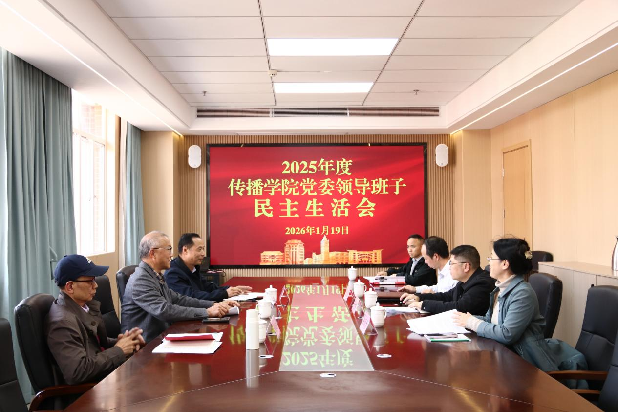 1月19日下午,传播学院党委领导班子在学院四楼会议室召开2025年度民主生活会。校党委民主生活会督导组成员杨守辉到会指导。院党委领导班子成员参加会议,无党派人士院领导吴青青列席会议。会议由院党委书记郑文灿主持。