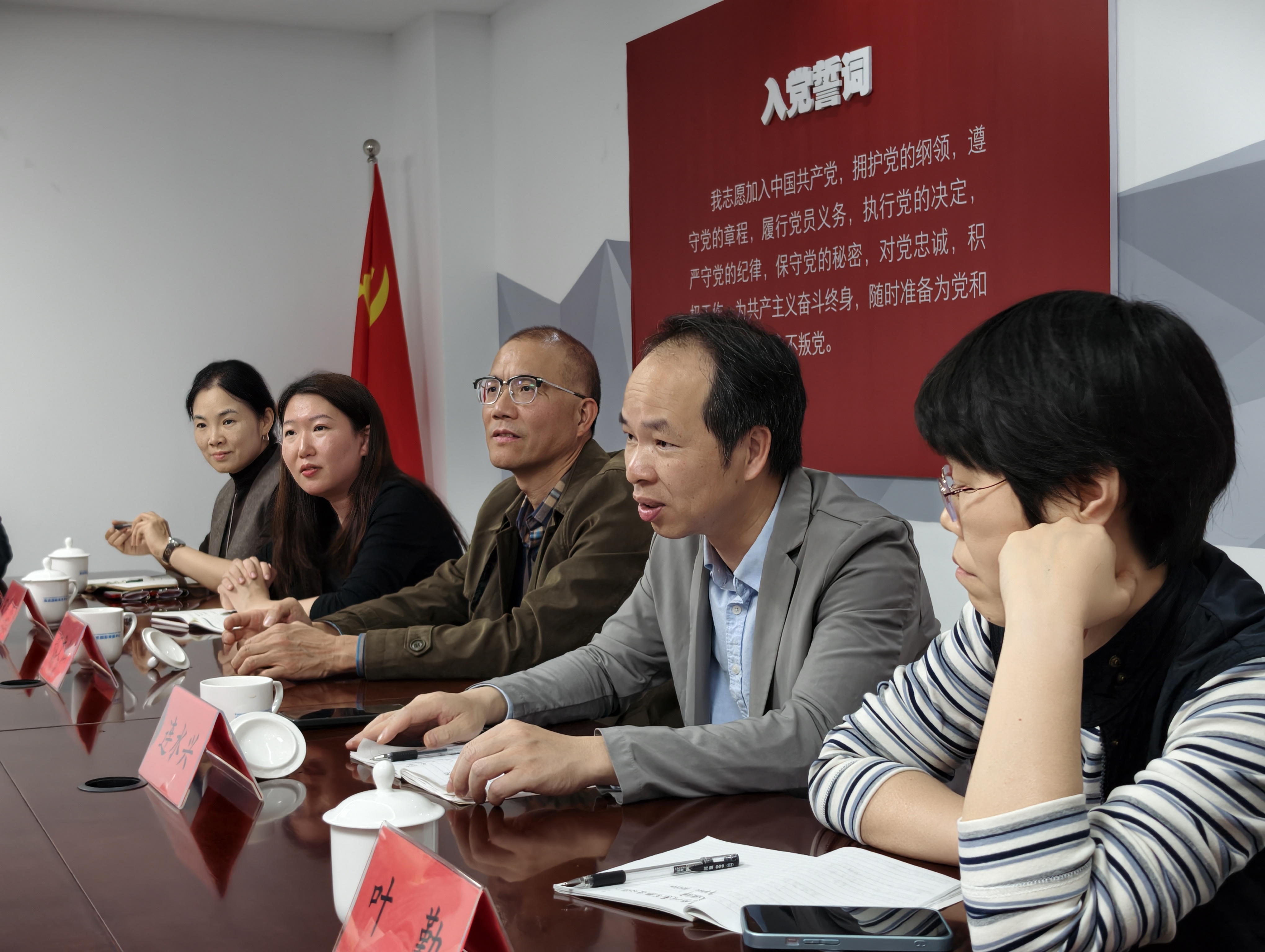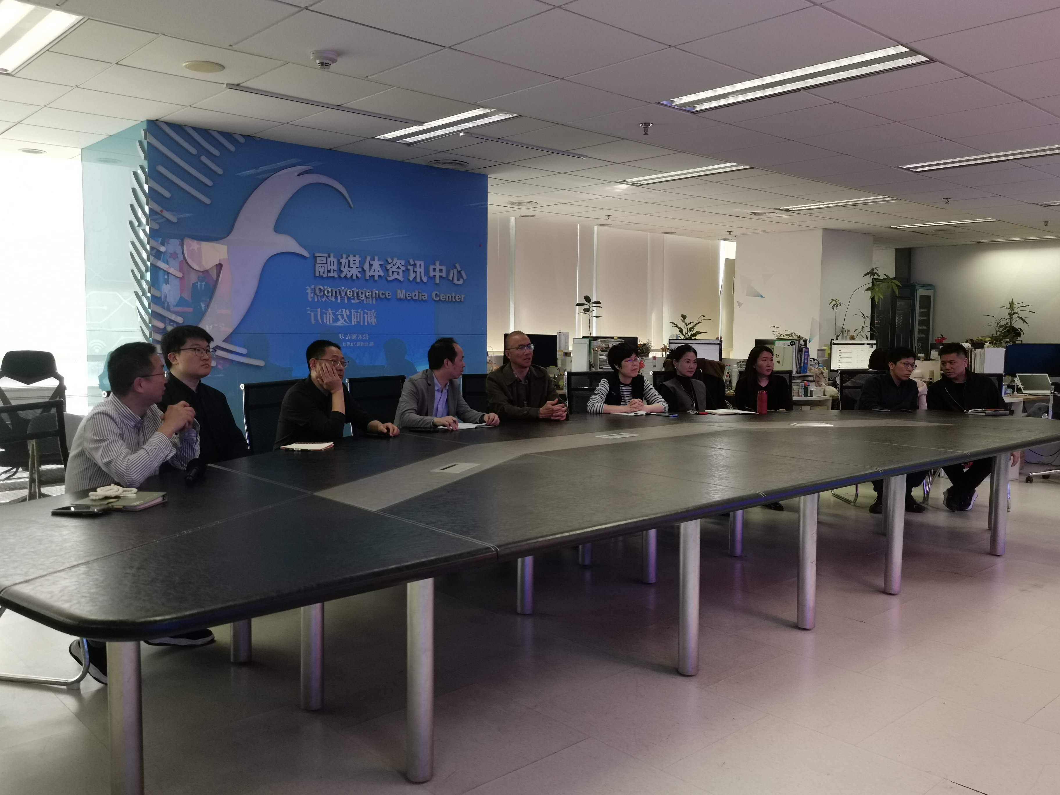 福建国际传播中心对我院一行表示热烈欢迎,福建网络广播电视台台长、福建新时代国际传播中心有限公司总经理赖晗,福建国际传播中心国际传播部主任唐征宇、副主任李丞,以及翁陈兰、吴俊锋等参加座谈交流。