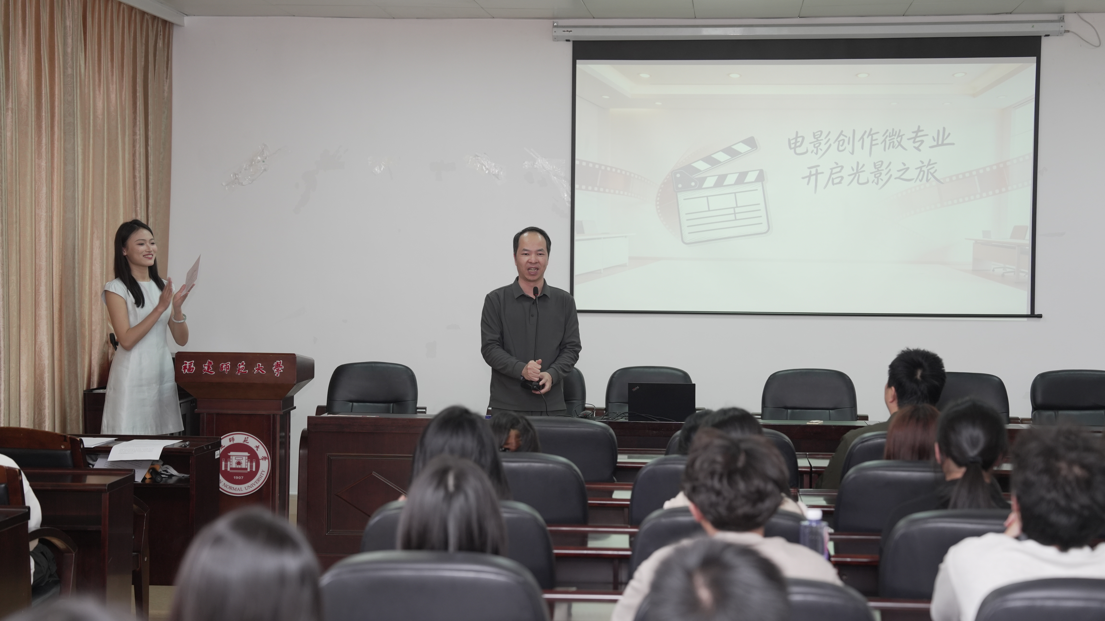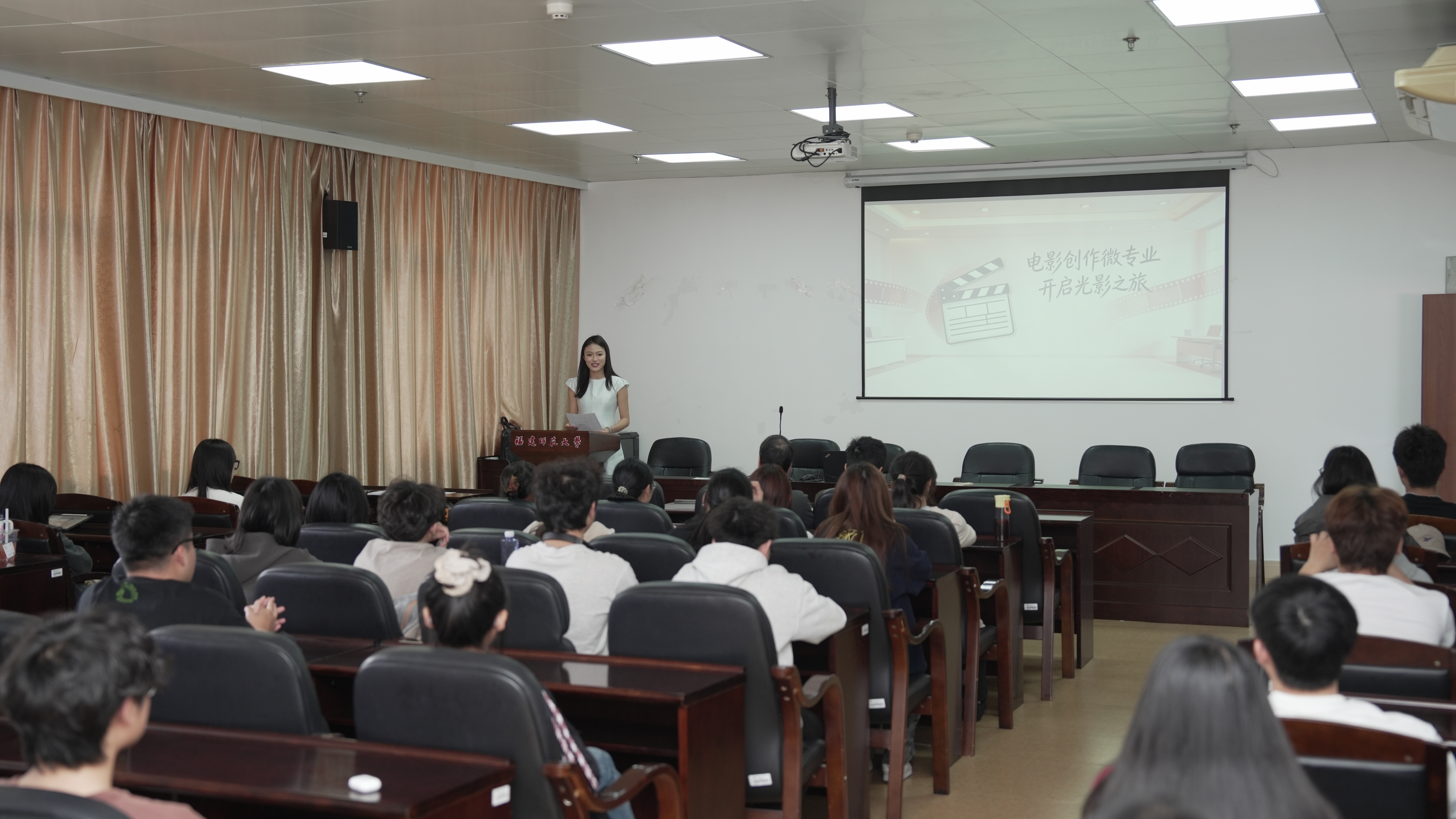 3月25日,作为教育部双千计划认证项目,由福建师范大学传播学院牵头,携手福建省广播影视集团、福州电视台等行业龙头共建的电影创作微专业开班仪式在传播学院5楼会议室圆满举行。本次电影创作微专业的学员队伍阵容多元,来自全校13个学院、26个专业的61名优秀学子共同组成了这支跨学科、复合型的学习共同体。