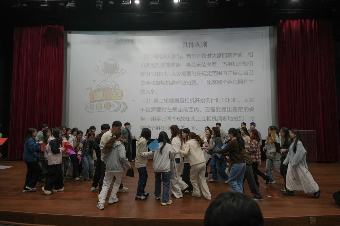 “我的登船照”环节中,各小组成员为了让更多人入镜拼尽全力、默契配合,在为团队荣誉共同努力的过程中,深化了集体荣誉感。趣味惩罚环节更是让大家放下拘束、大胆释放自我,在欢声笑语的集体互动中,进一步增进了彼此的包容感与亲密感。