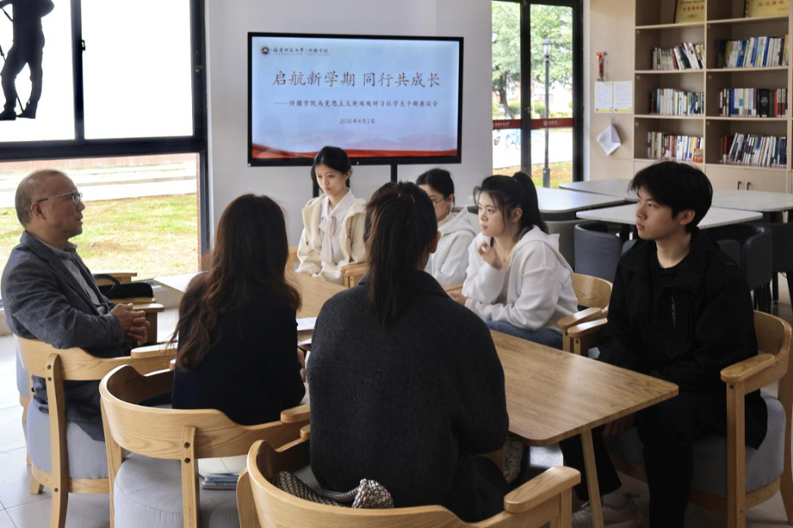 4月2日上午,我院在“数智传媒人”一站式学生社区召开马克思主义新闻观研习社学生干部座谈会。院党委书记郑文灿,研习社指导老师魏倩怡以及研习社全体学生骨干参会。