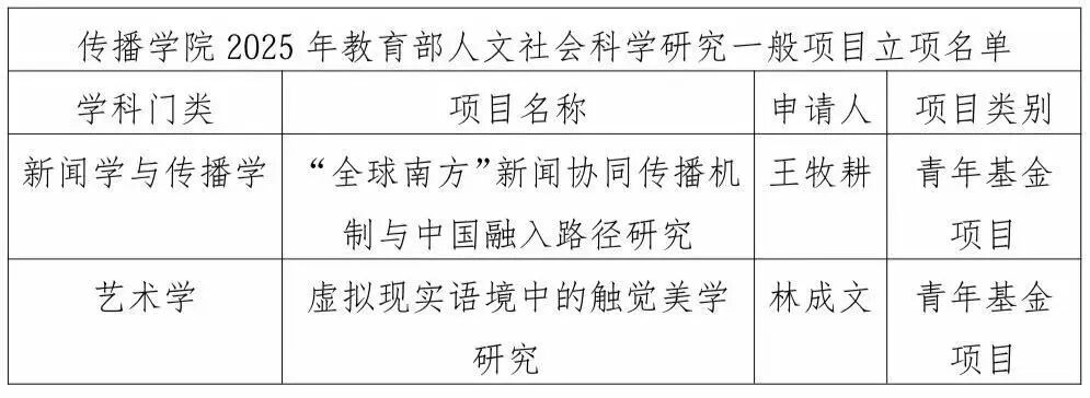 近日,教育部社会科学司发布了关于2025年度教育部人文社会科学研究一般项目立项的通知,正式公布2025年度立项结果。其中,我院获立2项青年基金项目。具体立项名单如下: